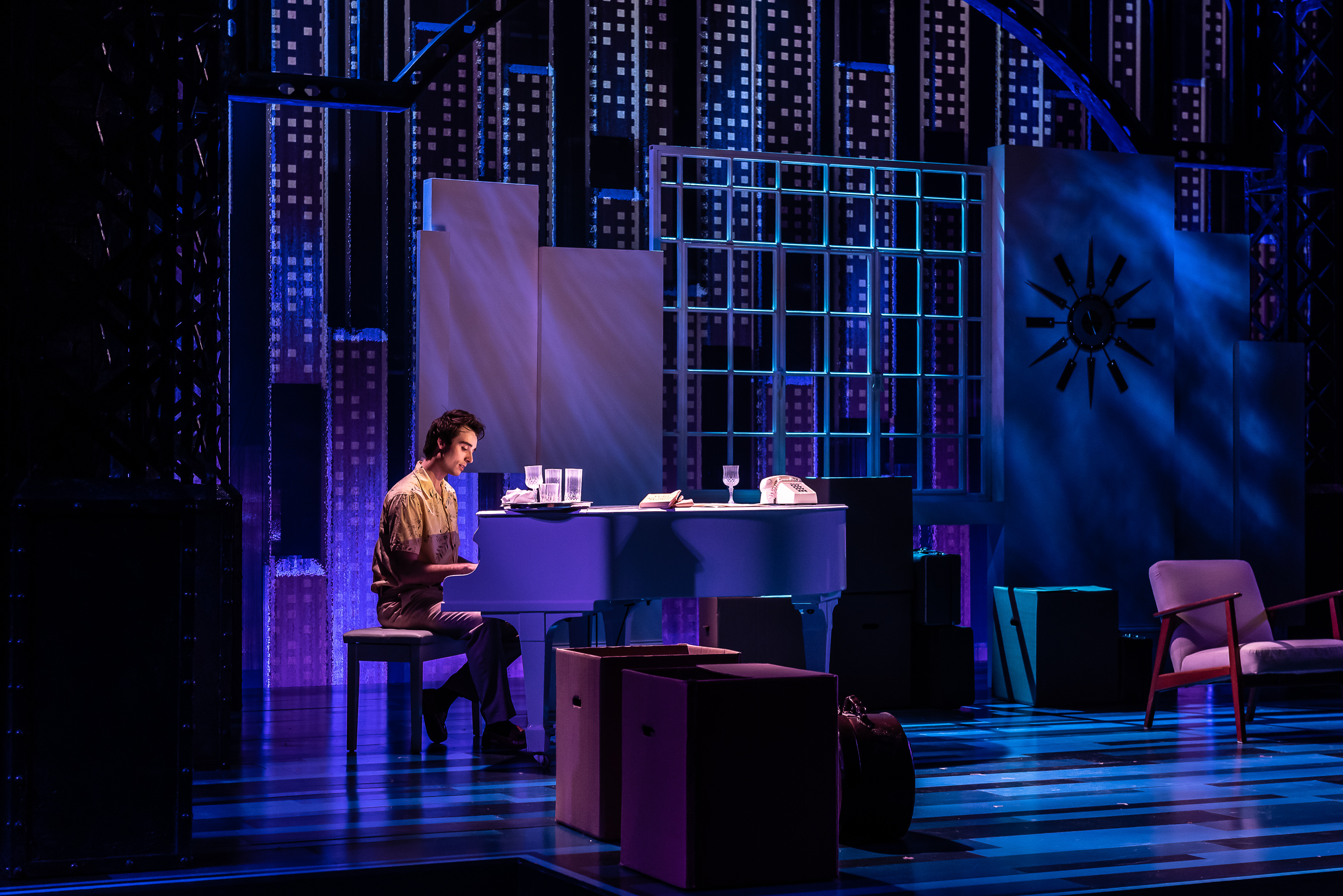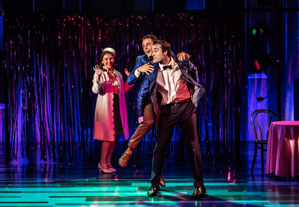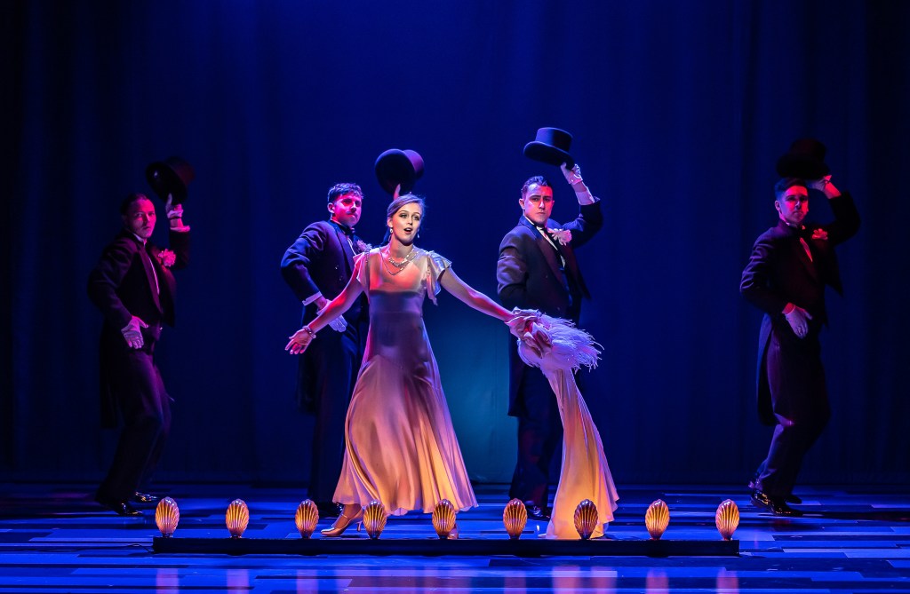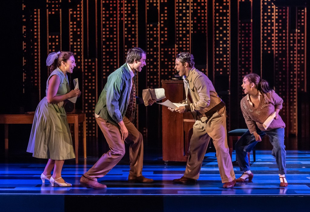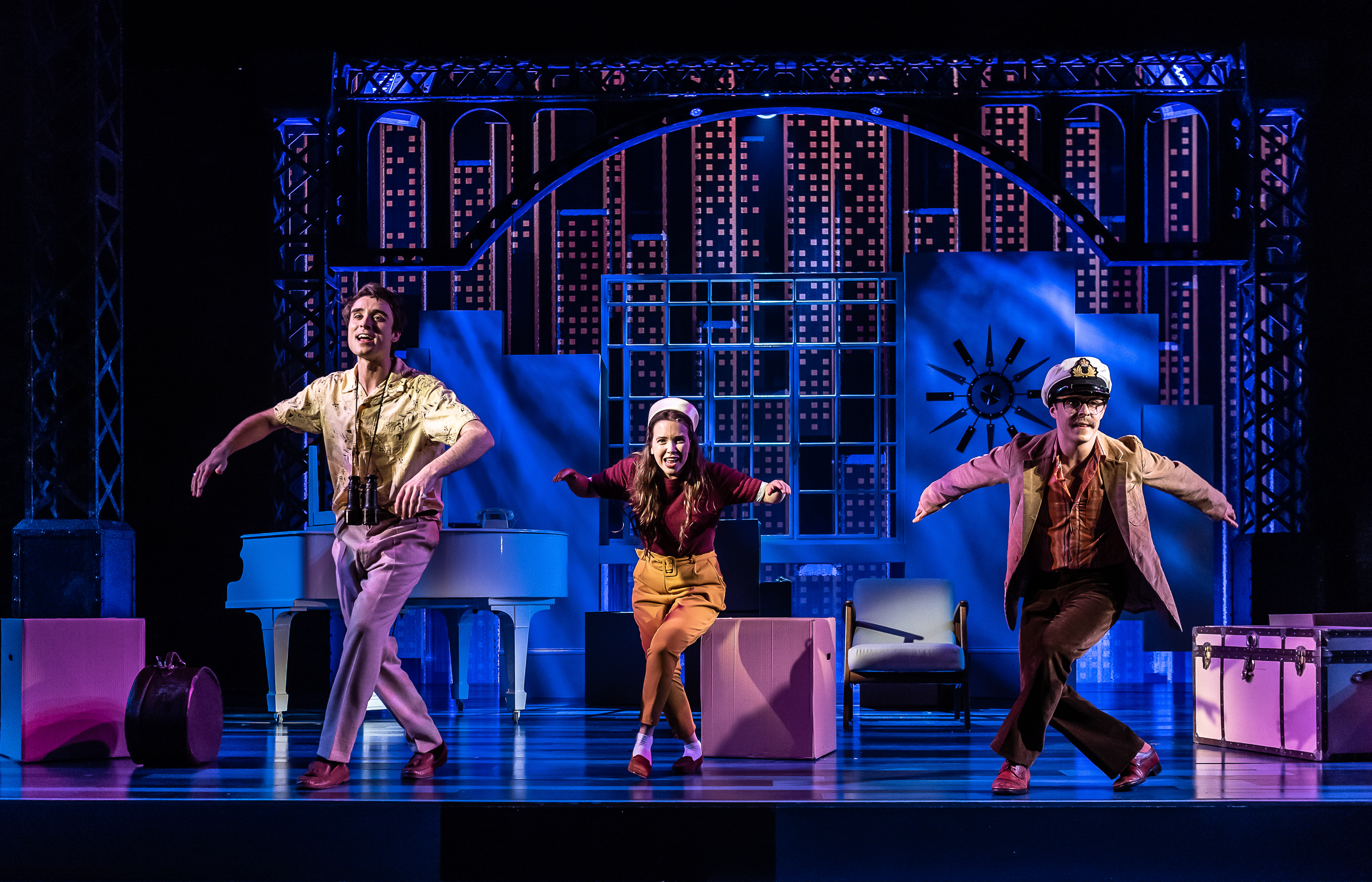 Sous la direction de Martin Connor et du chorégraphe Ewan Jones, l’excellent travail d’équipe sur les numéros d’ensemble, comme la chanson titre, «Opening Doors», «Our Time» et «Old Friends», enthousiasme le public à chaque représentation. Après un début quelque peu incertain, Oli Higginson, Joseph Potter et Julia Randall jouent les trois rôles principales avec une confiance croissante. Le Kringas de Potter brille particulièrement dans le numéro difficile « Franklin Shepard Inc ». La voix quaisi lyrique d’Erica Nicole Rothman convient parfaitement à l’une des plus belles chansons de Sondheim, « Not A Day Goes By », autant la version amère devant le Palais de Justice dans l’acte I que la version heureuse avec Frank et Mary son jour de mariage dans l’acte II. Dans le rôle de Gussie, Isabella Brownson à l’opportunité de nous éblouir avec son grand numéro « Opening » dans l’acte II et dans celui de l’impresario, Nick Apostolina nous enthousiasme avec « It’s A Hit » lorsque la première comédie musicale de Shepard-Kringas, Magical Husbands, ouvre ses portes à Broadway.